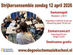 Er is plaats voor 8 deelnemers per workshops. Deze vinden plaats op de muziekschool n Bussum. Workshops zijn van 13.30 tot 14.30 uur of van 15.00 tot 16.00 uur. Aanmelden via marieke@degooischemuziekschool.nl of info@degooischemuziekschool.nl.