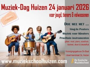 Op zaterdag 24 januari 2026 organiseert De Gooische Muziekschool een Muziek-Dag in Huiden op onze locatie Verenigingsgebouw De Baat aan de IJsselmeerstraat 3b.