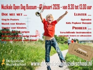 Op zaterdag 17 januari 2026 organiseren wij voor de Muzikale Open Dag in Bussum. Een unieke mogelijkheid om samen met je kind(eren) kennis te maken met muziek. Hieronder tref je het programma aan.