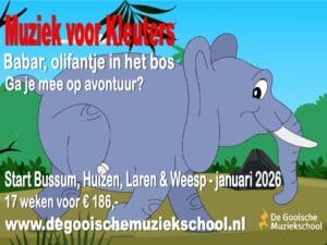 Eind januari 2026 gaan we weer van start met een nieuwe cursus Muziek voor Kleuters met als thema Babar, olifantje in het bos. In 17 weken gaan we op pad met Babar. Babar is een hele lieve olifant en woont in het bos en gaat op groot avontuur naar de grote stad. Waar gaat hij naar op zoek? Hij zoekt naar beroemdheid, nieuwe liedjes en nog veel meer …! Stap mee in dit avontuur en ontdek wat Babar allemaal in die grote stad gaat ontdekken.